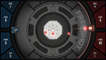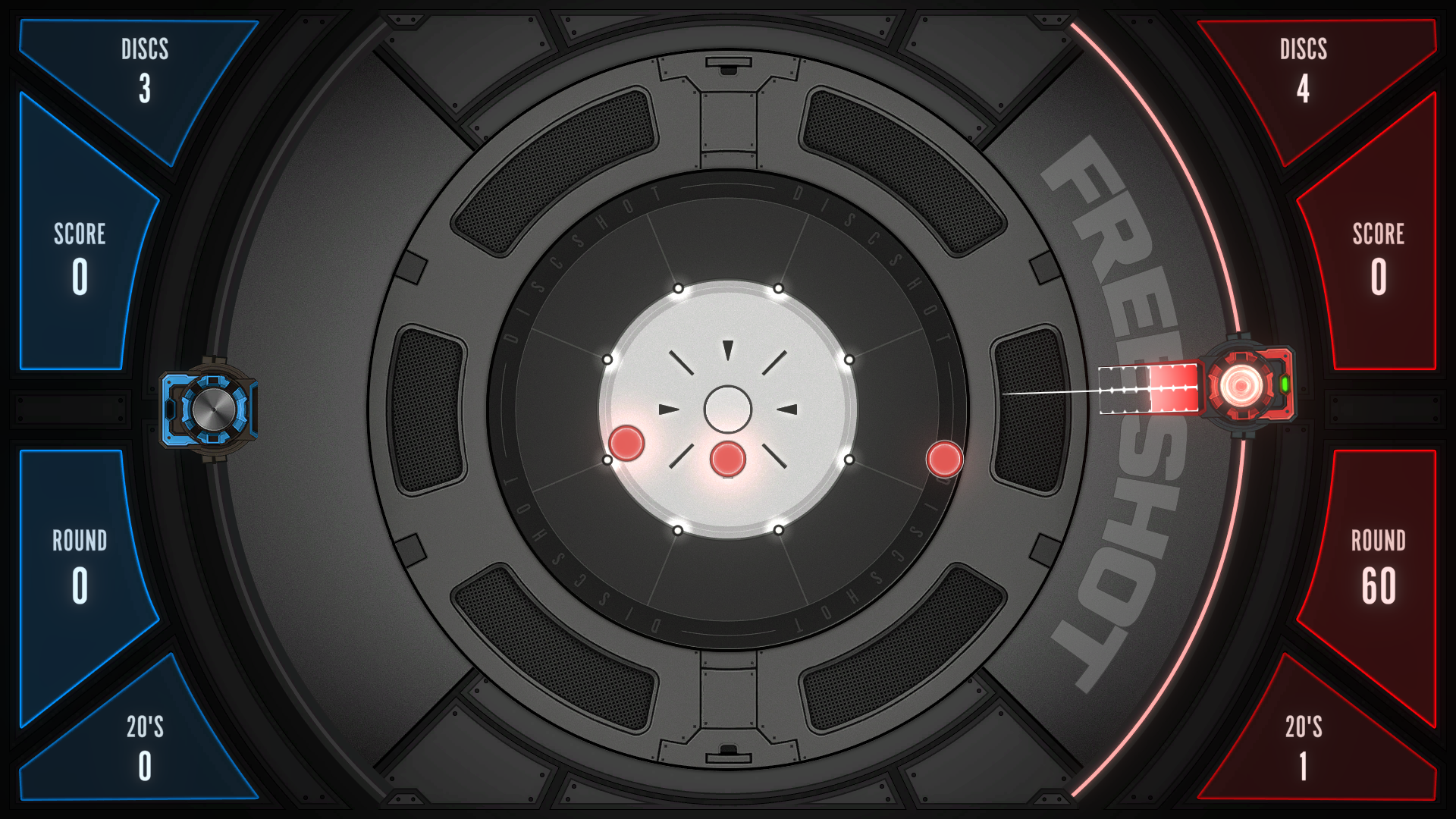 This is a minimalist, sci-fi-themed digital adaptation of the classic dexterity game, crokinole.